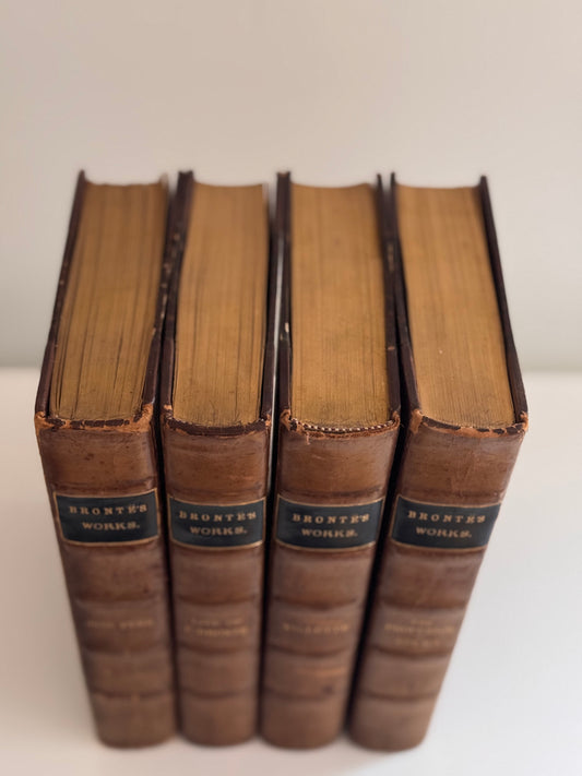 Antique 19c Brontë’s Works Book Set Jane Eyre Villette 1887 Leather Marbled
