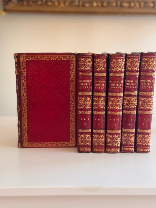 Antique 1823 Complete Set Miscellaneous Works Of Oliver Goldsmith Full Leather