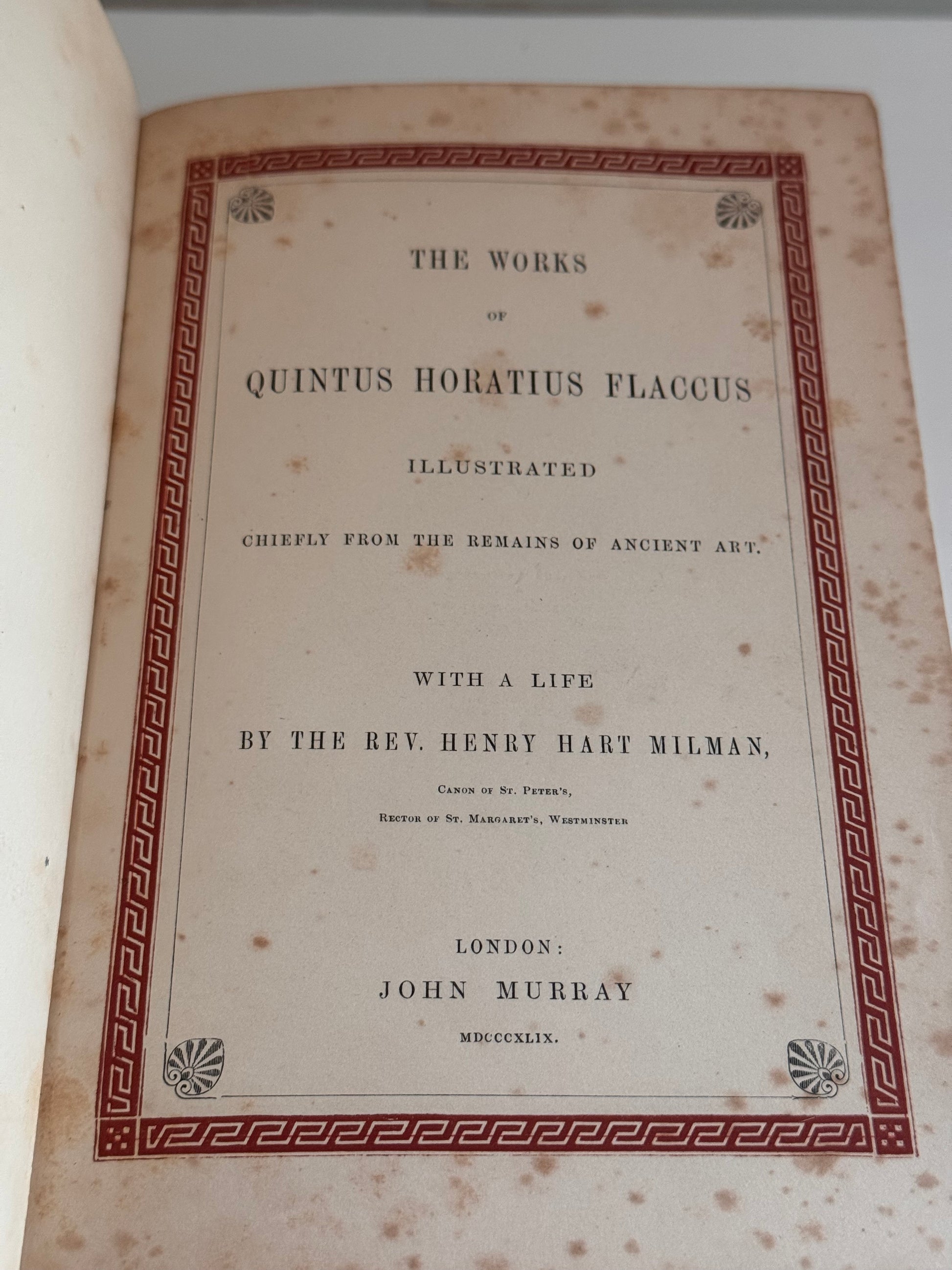 1849 The Works of Horatius Quintus Flacuss With A Life By The Rev. Henry Hart Milman