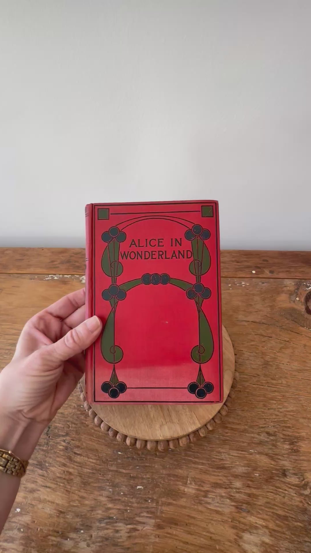 Antique copy of Alice in Wonderland by Lewis Carroll (or as any Shaw publishing prints it, Louis Carroll). Published early 1900s by John F. Shaw, London. Color illustrations and a fabulous art nouveau binding! Some sun fading to the boards and spine but colors are still bright. Overall a very good solid copy with tight binding and a clean interior!