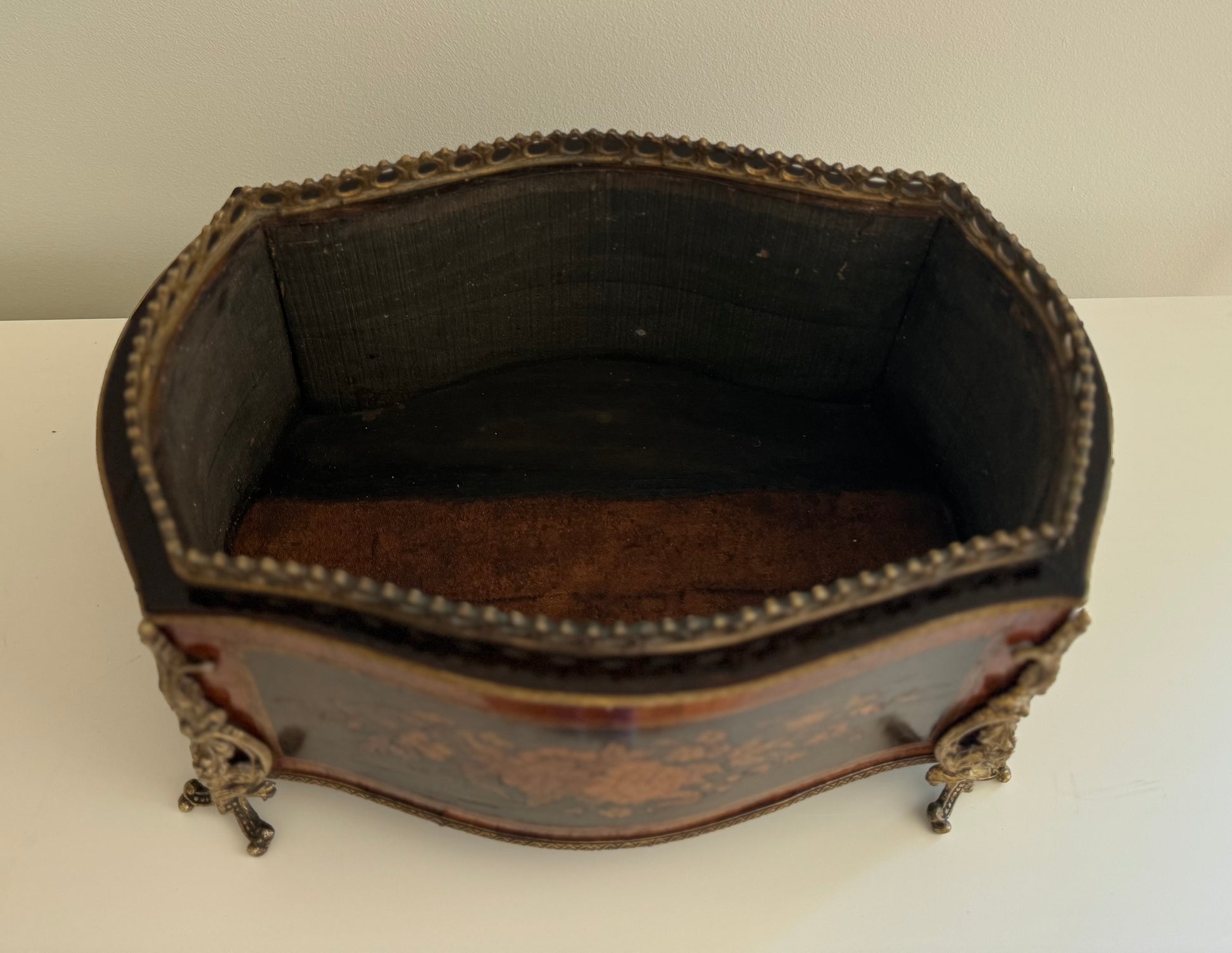 Antique 19c French Napoleon III Floral Marquetry Wood & Bronze Jardiniere Planter