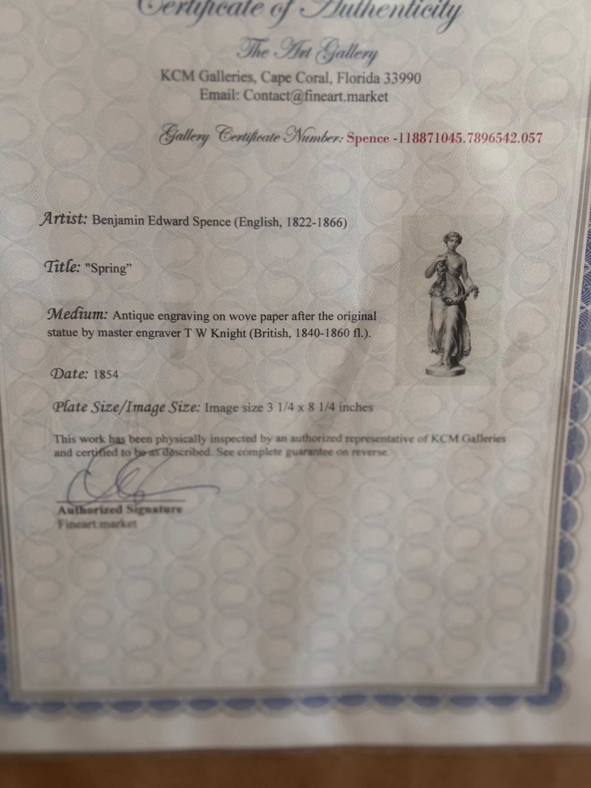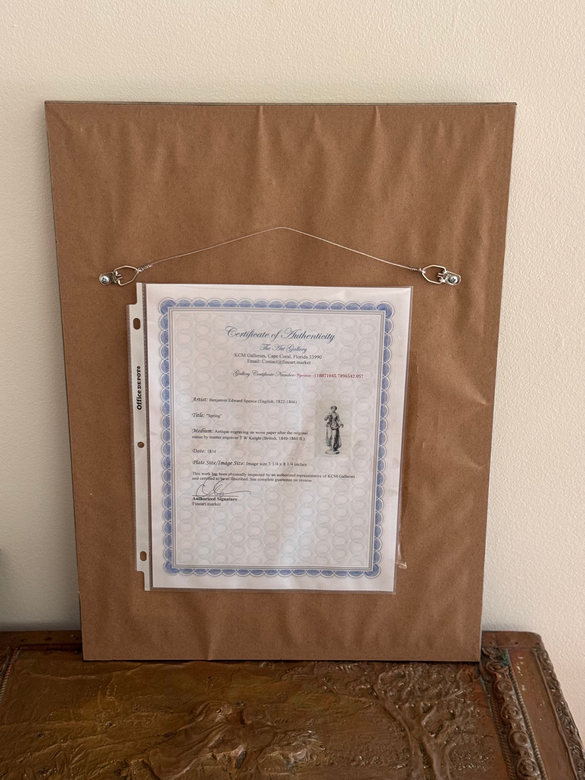 Antique British Engraving Portrait of Spring Benjamin Spence 1854 Woman