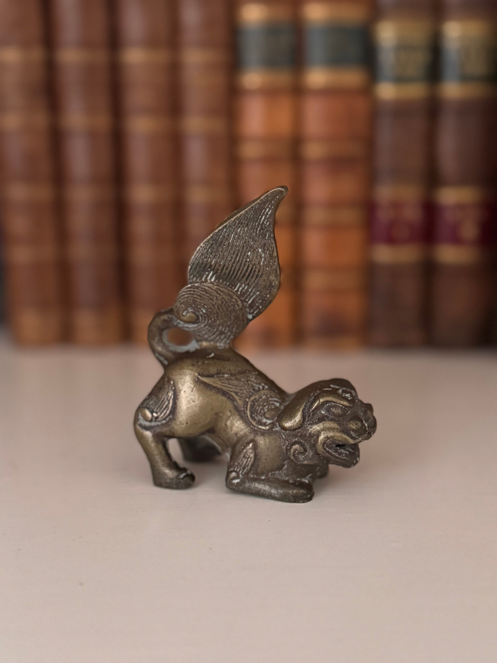 Antique bronze figure of a Foo dog. It might have been a furniture or statue remnant. Was bought from a Paris market. Lovely patina and just an overall great little styling object.