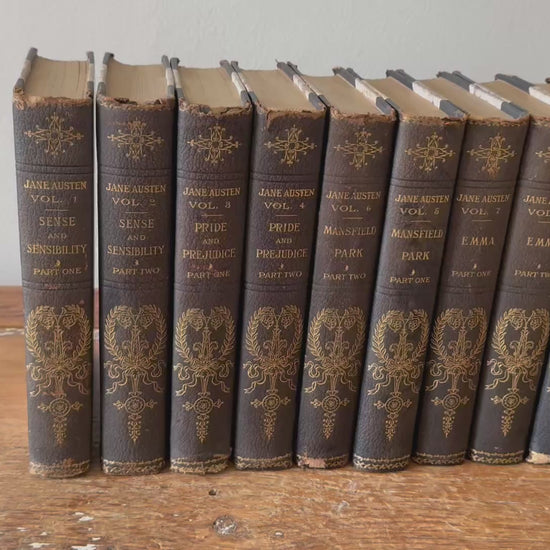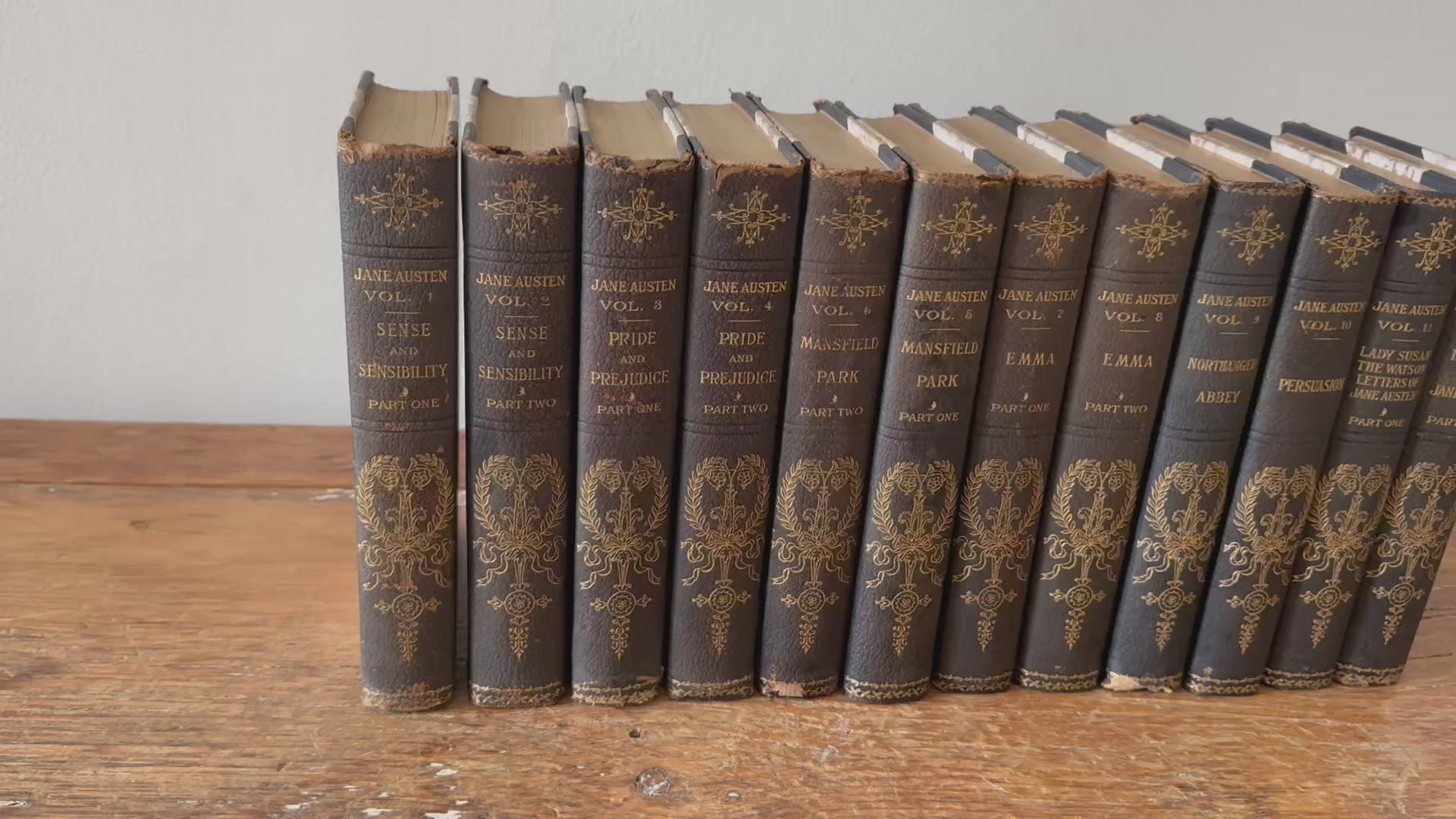 RESERVED Antique Full 12 Vol Set Jane Austen Novels Manydown Edition 1906 Black Leather & Marble Binding Pride & Prejudice
