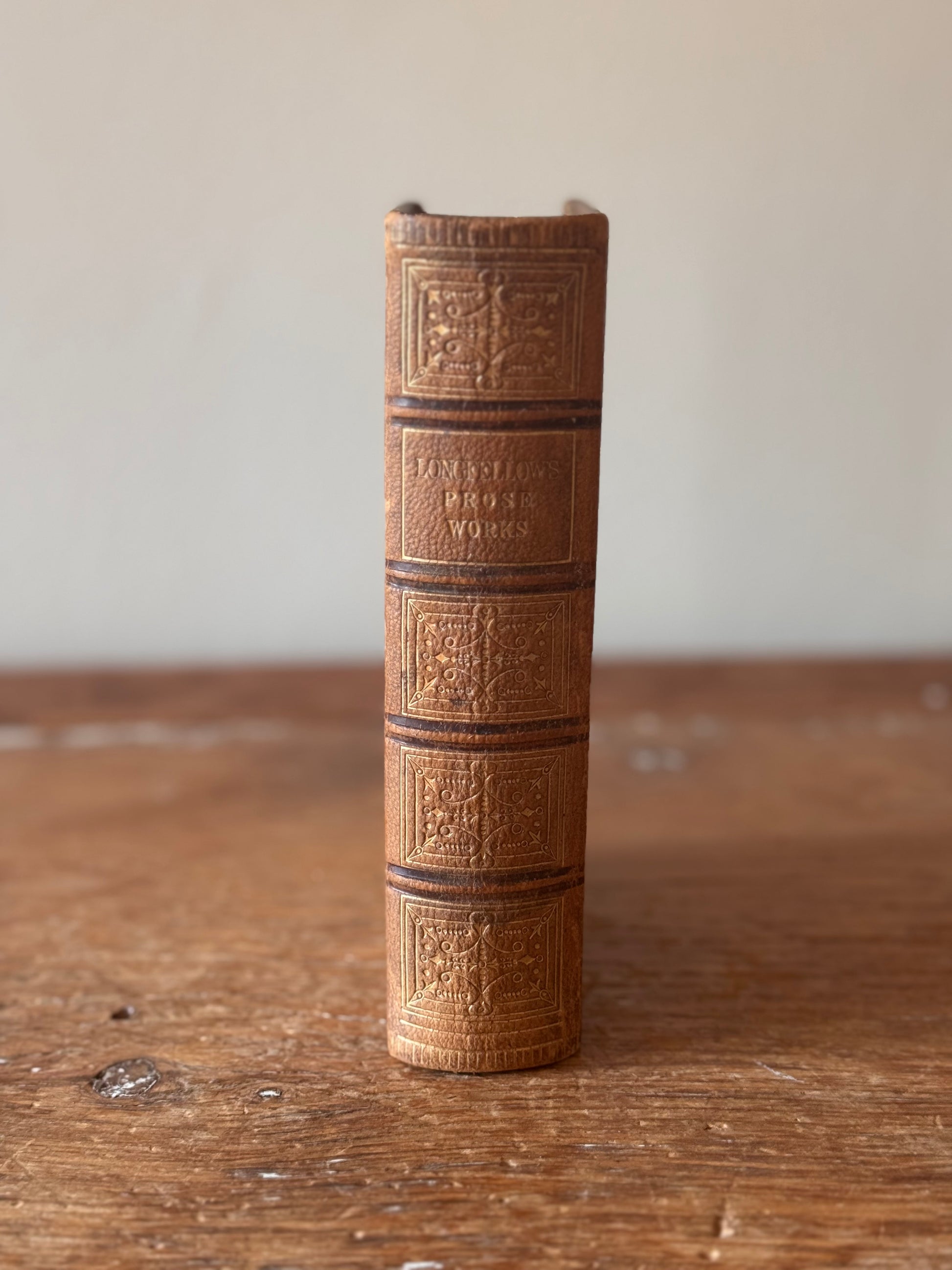 Antique Longfellow’s Prose Works Complete Volume 1853 Full Leather Book