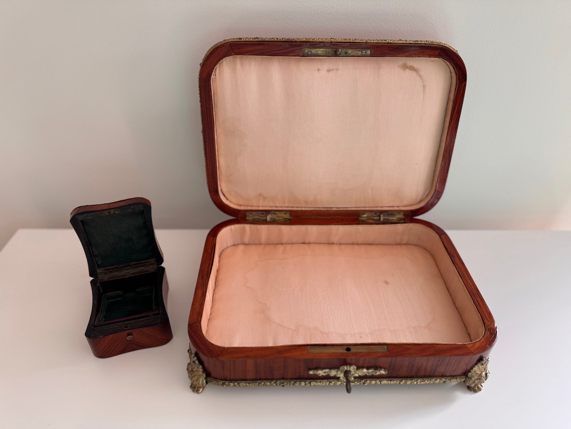 Antique Napoleon III Rosewood & Bronze Parquetry Jewelry Box
