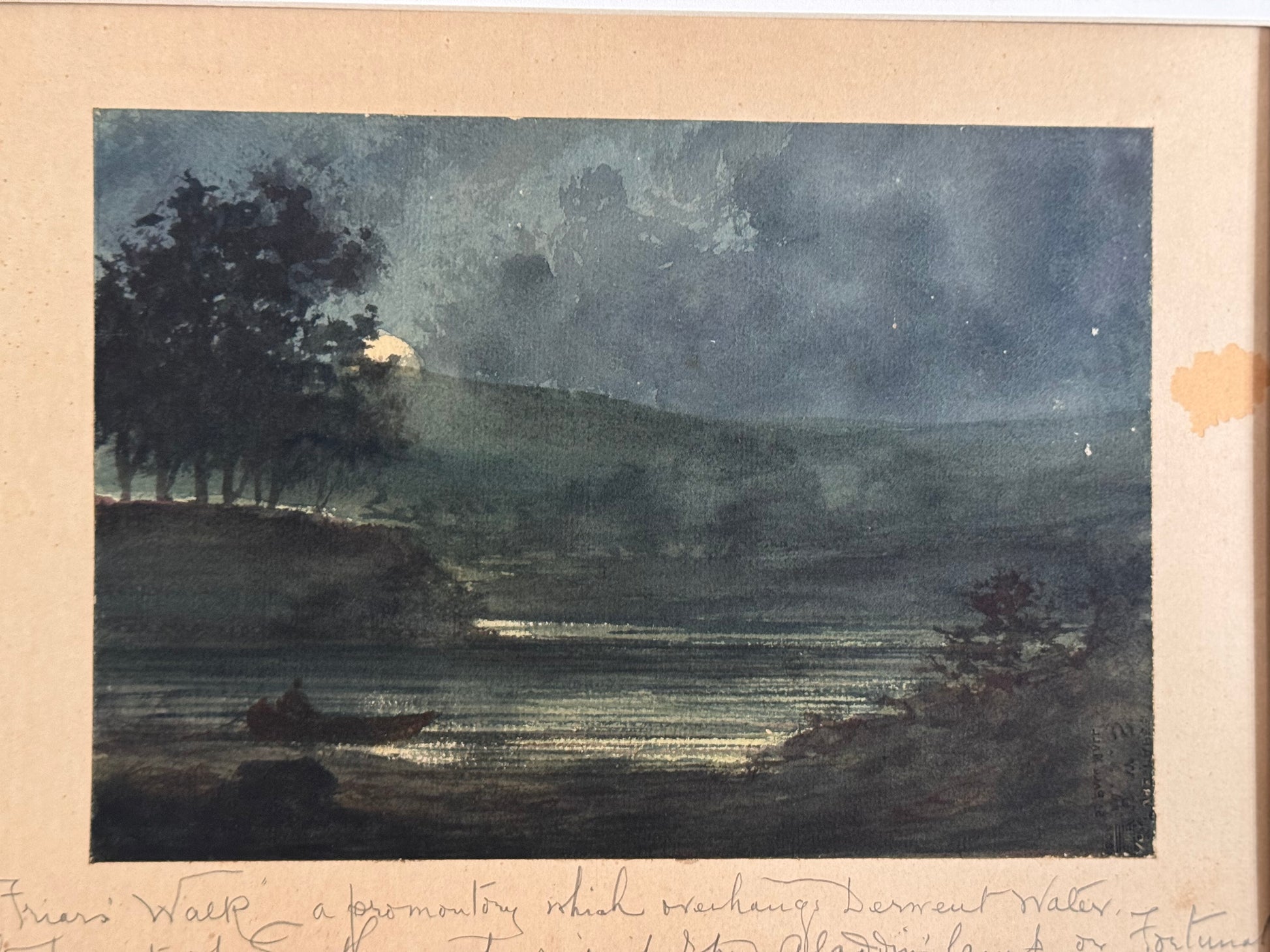 Antique Paul Braddon English Watercolor Robert Southey Night Waterscape