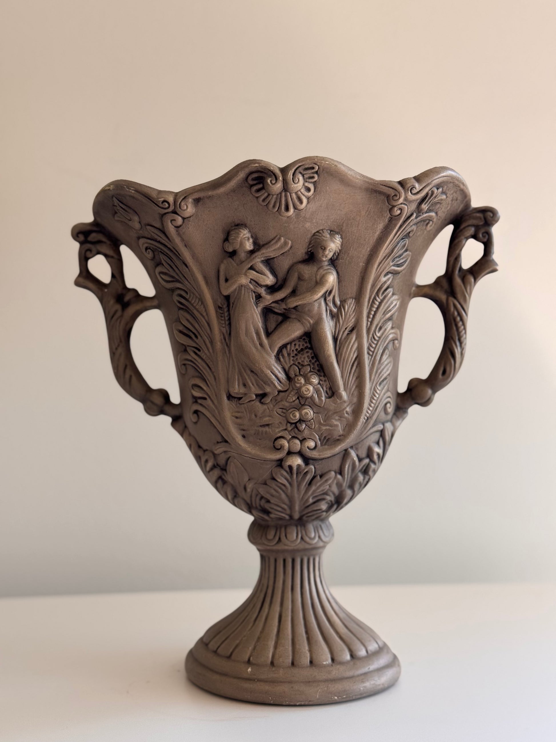 Vintage 1970s Neoclassical Ceramic Trophy Style Vase Urn