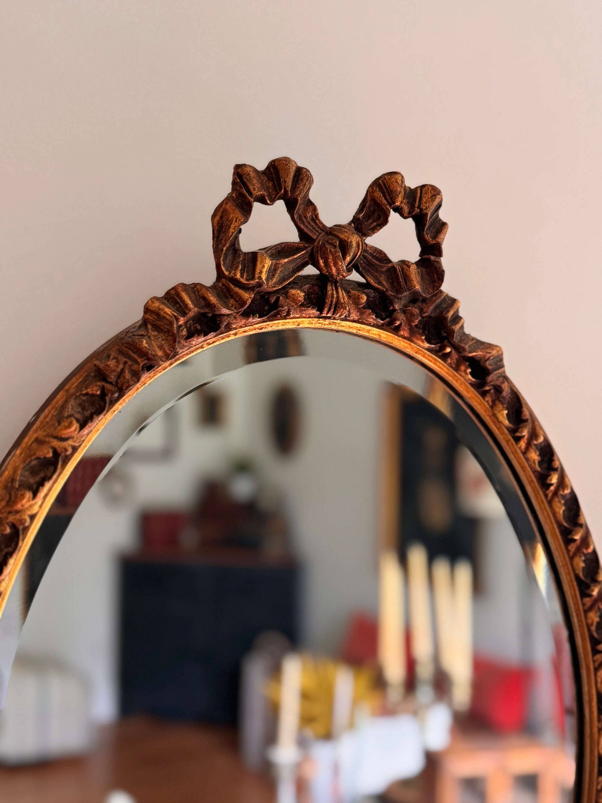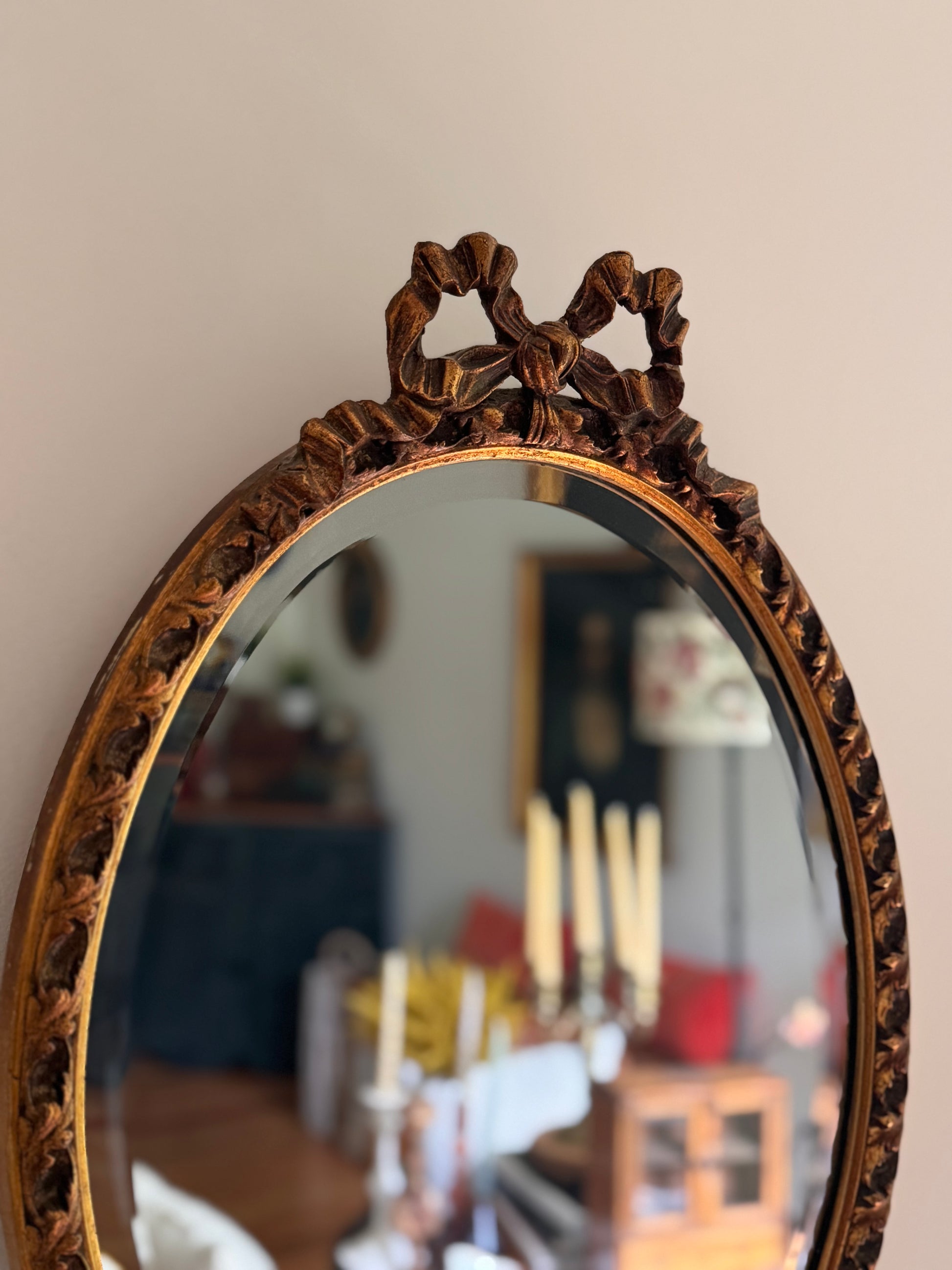 Vintage French Gold Gilded Bow Mirror Beveled Glass