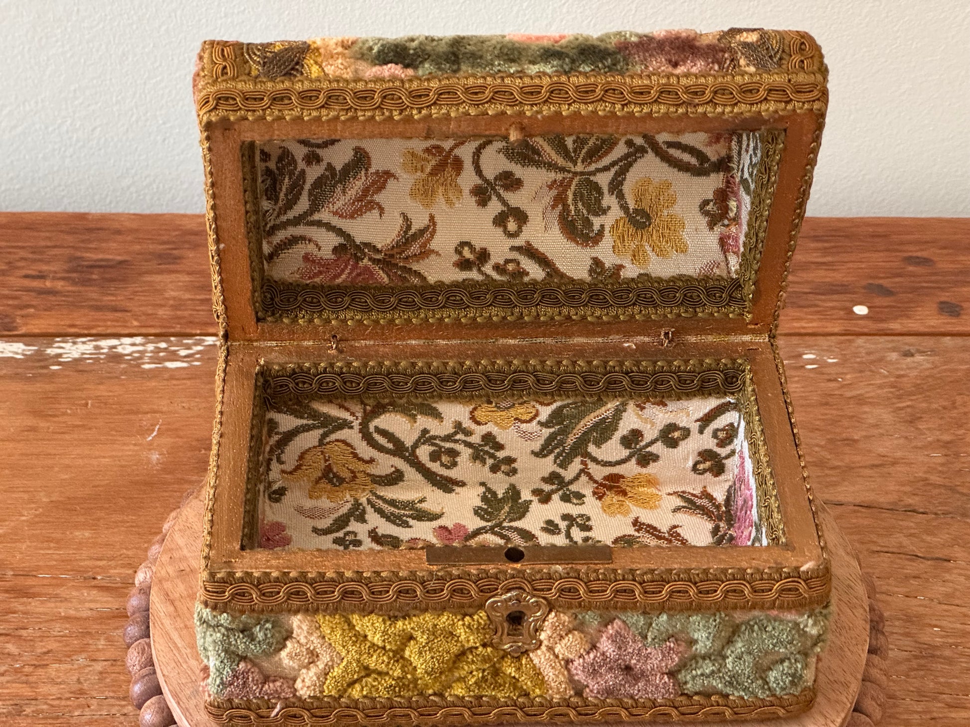 Vintage Italian Floral Tapestry & Brass Domed Trinket Jewelry Box