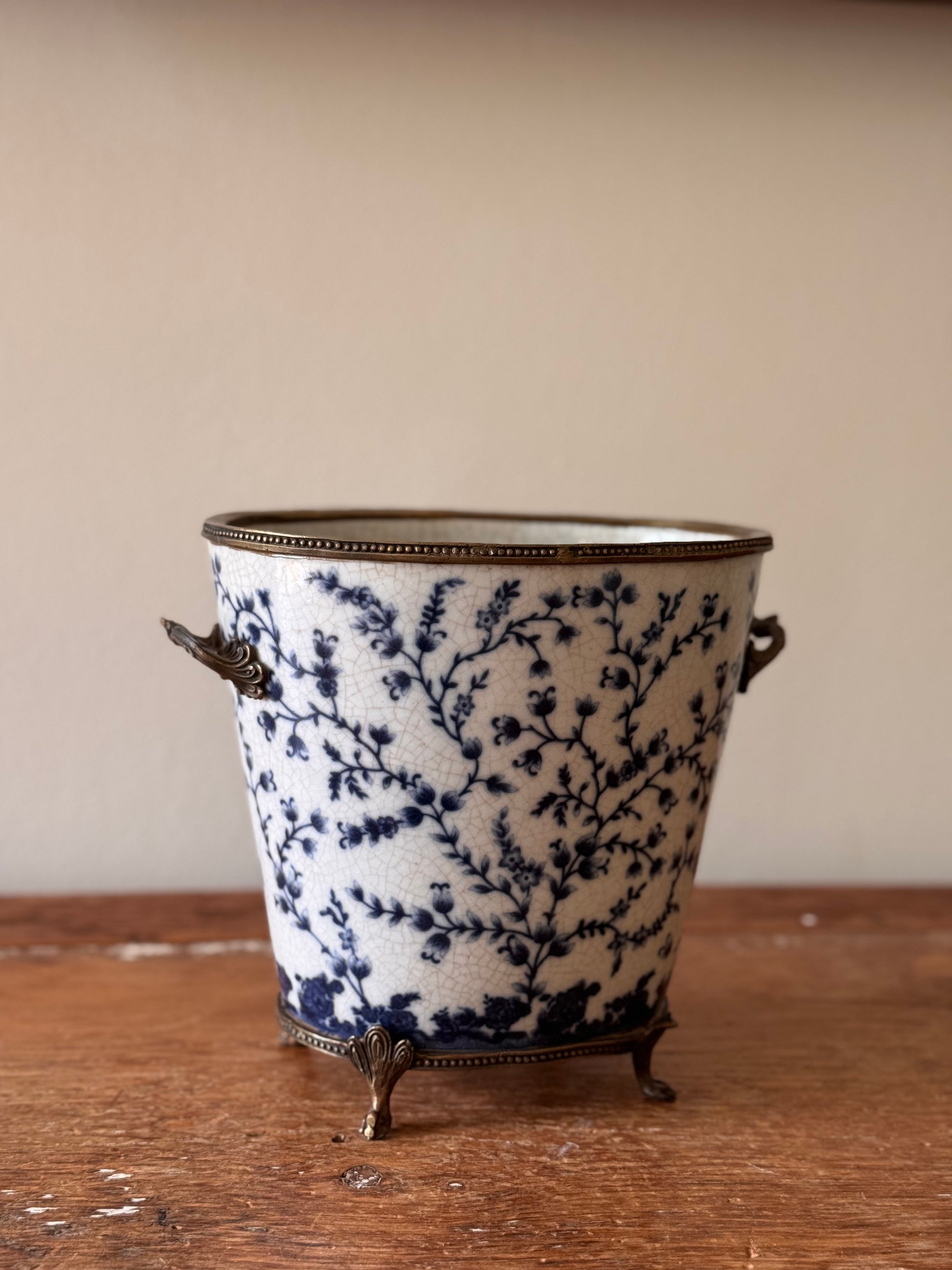 Vintage Wong Lee 1895 stamped porcelain planter. Just a perfect WL piece with a versatile blue flower pattern! No major disclaimers.